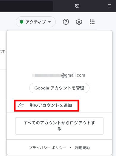Gmailを個人メールなどほかのメールアドレスで使ったことがある場合、右上をクリックして「別のアカウントを追加」をクリックすると、メールアドレス入力画面が出ます。