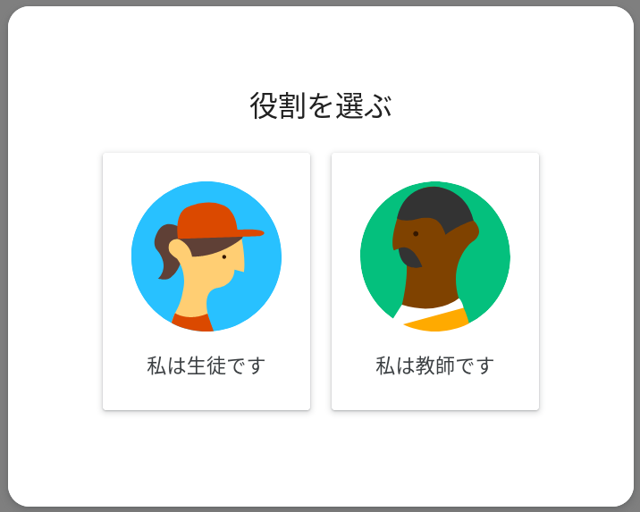 クラスルームへの初回ログイン時に、生徒か教員かの選択が出ること
